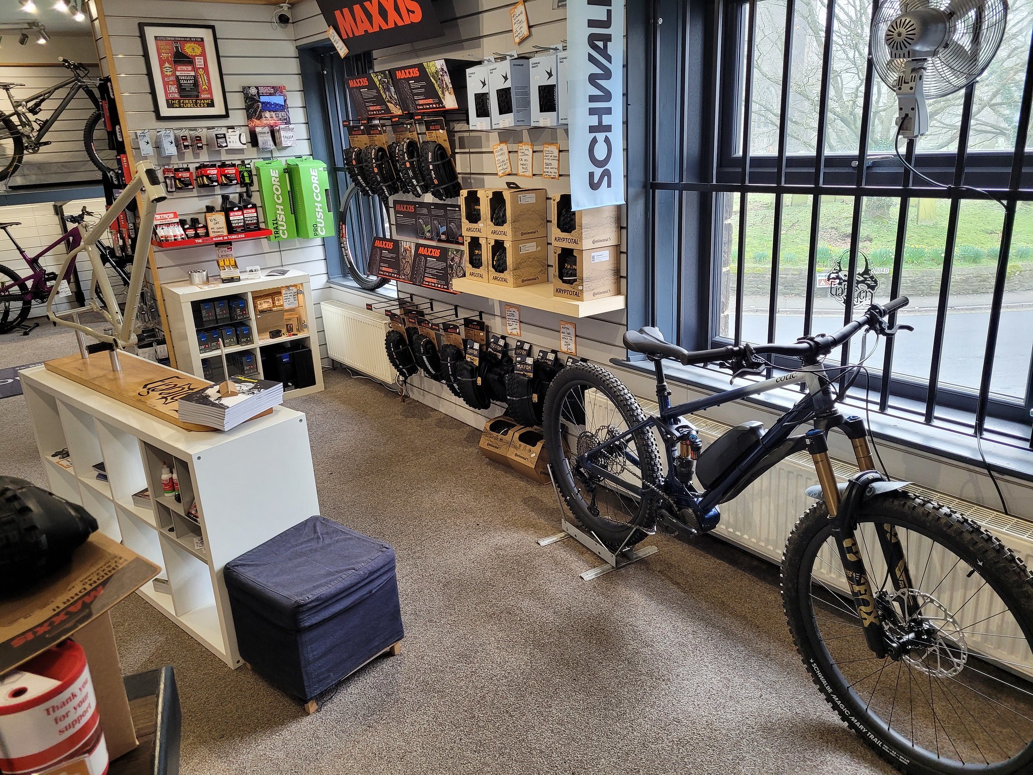 We have a demo Rocket for riders to test, plus the option to borrow from Cotic's extensive demo fleet. There'll be a couple of Cotic frames on the wall, which we'll rotate out for different models to keep things fresh across the year.